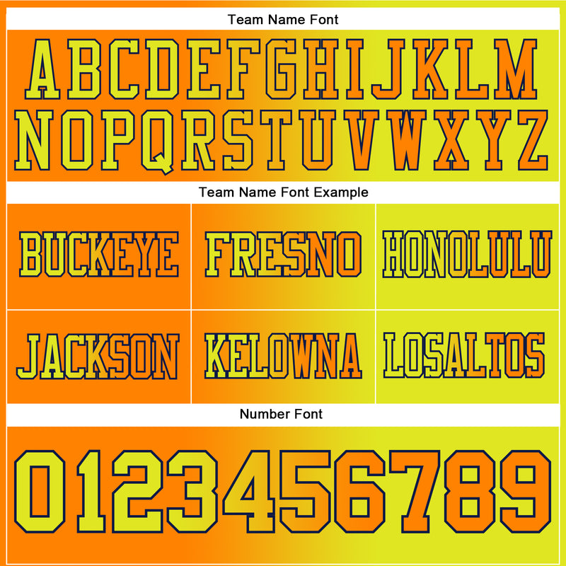 Custom Neon Yellow Bay Orange-Navy Authentic Gradient Fashion Football Jersey