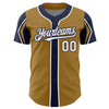 Custom Old Gold White-Navy 3 Colors Arm Shapes Authentic Baseball Jersey