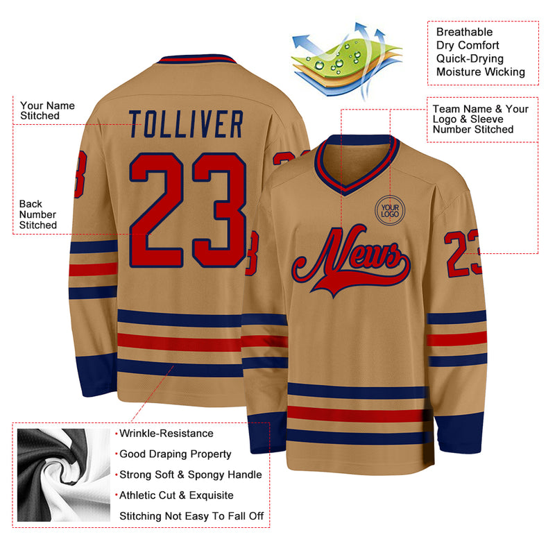 Custom Old Gold Red-Navy Hockey Jersey