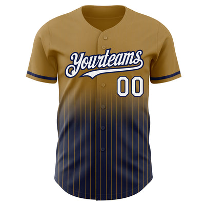 Custom Old Gold Pinstripe White-Navy Authentic Fade Fashion Baseball Jersey