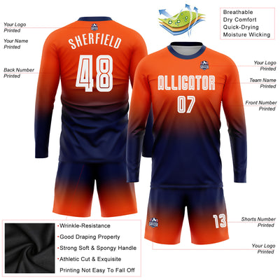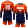 Custom Orange White-Navy Sublimation Long Sleeve Fade Fashion Soccer Uniform Jersey