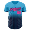 Custom Sky Blue Pinstripe Pink-Navy Authentic Fade Fashion Baseball Jersey