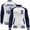 Custom White Gray-Navy Bomber Varsity Letterman Two Tone Zipper Jacket