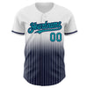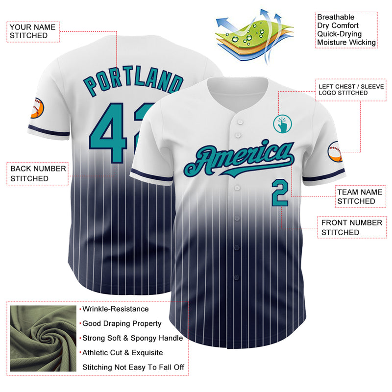 Custom White Pinstripe Teal-Navy Authentic Fade Fashion Baseball Jersey