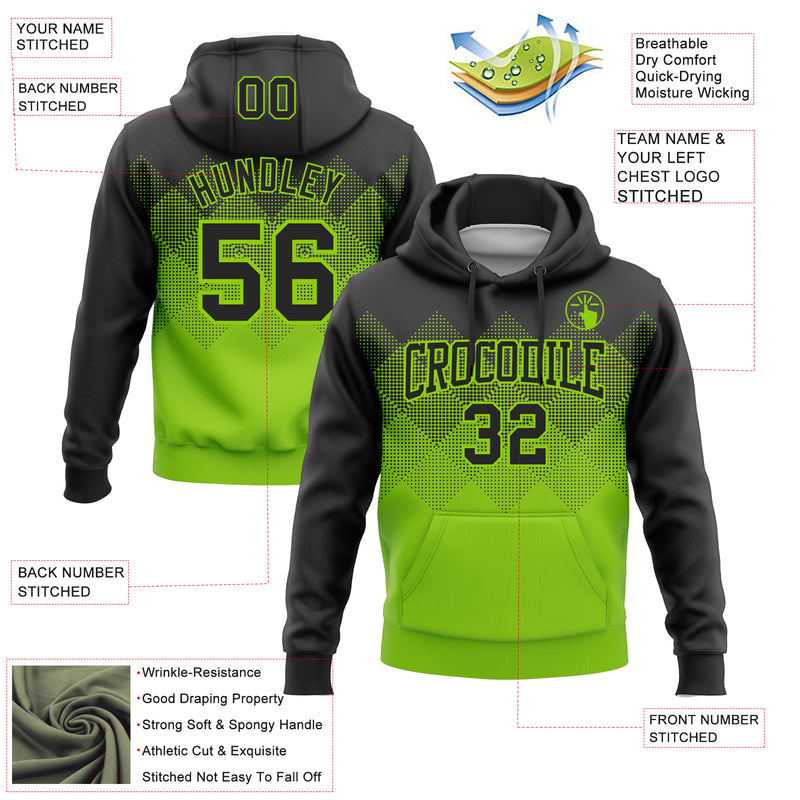 Custom Stitched Black Neon Green 3D Pattern Design Gradient Square Shape Sports Pullover Sweatshirt Hoodie