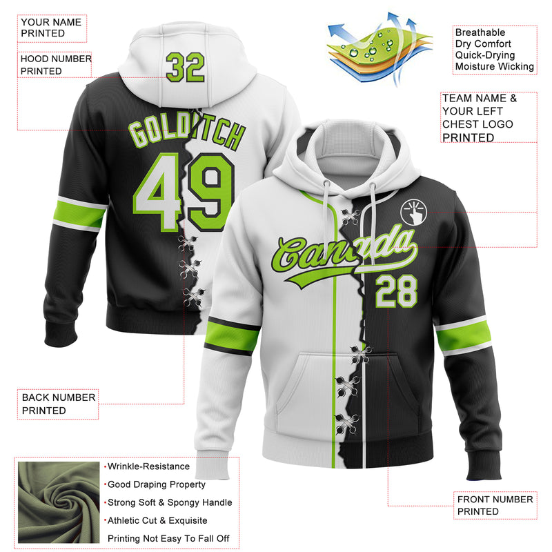 Custom Black White-Neon Green Split Ripped Pattern Baseball Pullover Sweatshirt Hoodie