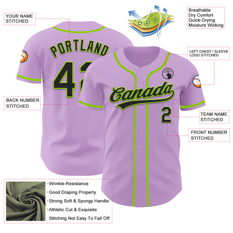 Custom Light Purple Black-Neon Green Authentic Baseball Jersey
