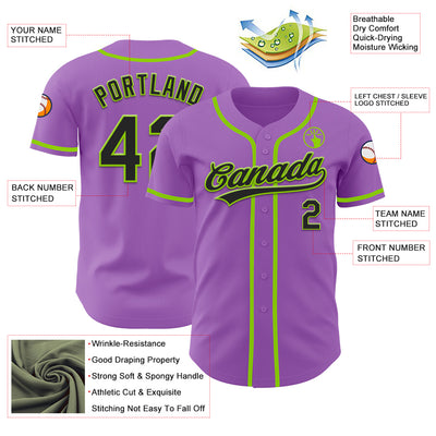 Custom Medium Purple Black-Neon Green Authentic Baseball Jersey