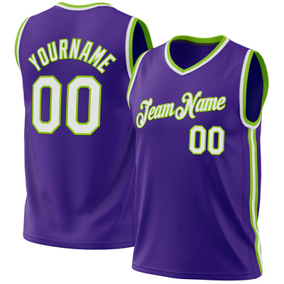 Custom Purple White-Neon Green Authentic Throwback Basketball Jersey
