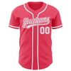 Custom Pink Pink-White Bomber Full-Snap Varsity Letterman Two Tone Jacket