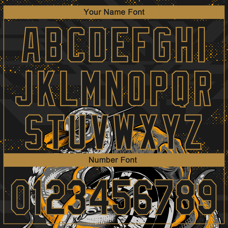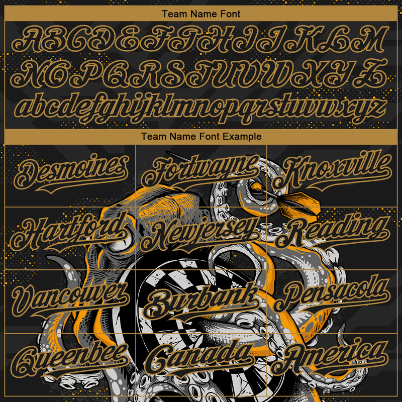 Custom Black Old Gold 3D Pattern Design Octopus Wrapped Around Dart Board Authentic Baseball Jersey