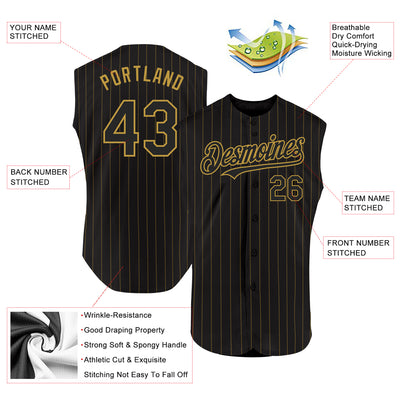 Custom Black Old Gold Pinstripe Old Gold Authentic Sleeveless Baseball Jersey