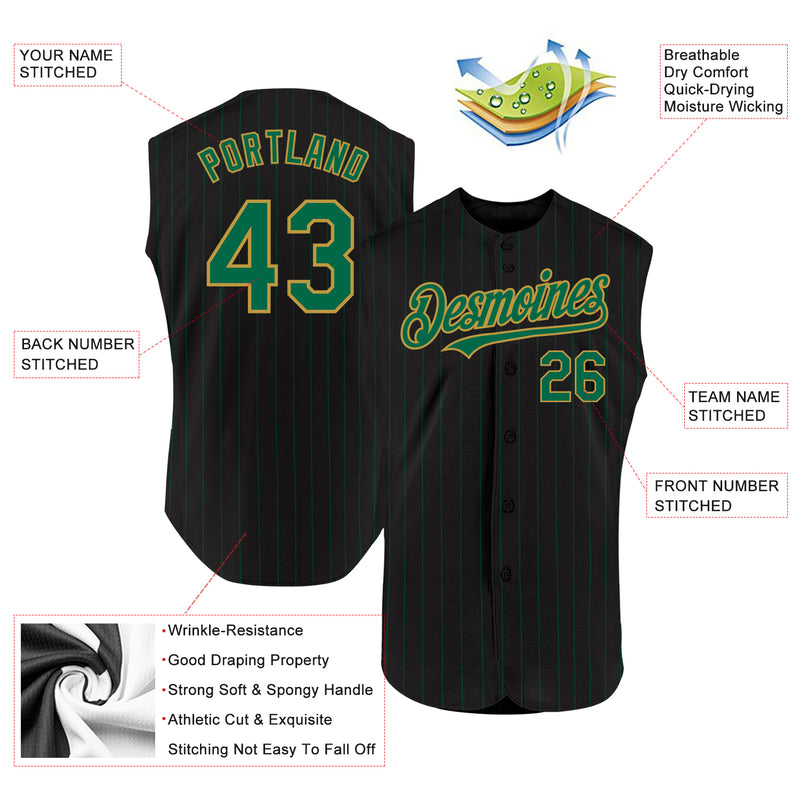 Custom Black Kelly Green Pinstripe Old Gold Authentic Sleeveless Baseball Jersey