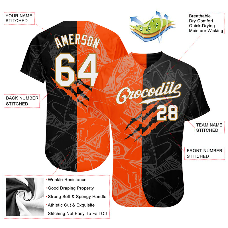 Custom Graffiti Pattern White-Old Gold 3D Authentic Baseball Jersey