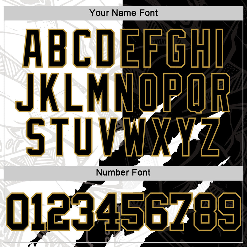 Custom Graffiti Pattern Black Old Gold-White Scratch Round Neck Sublimation Basketball Suit Jersey
