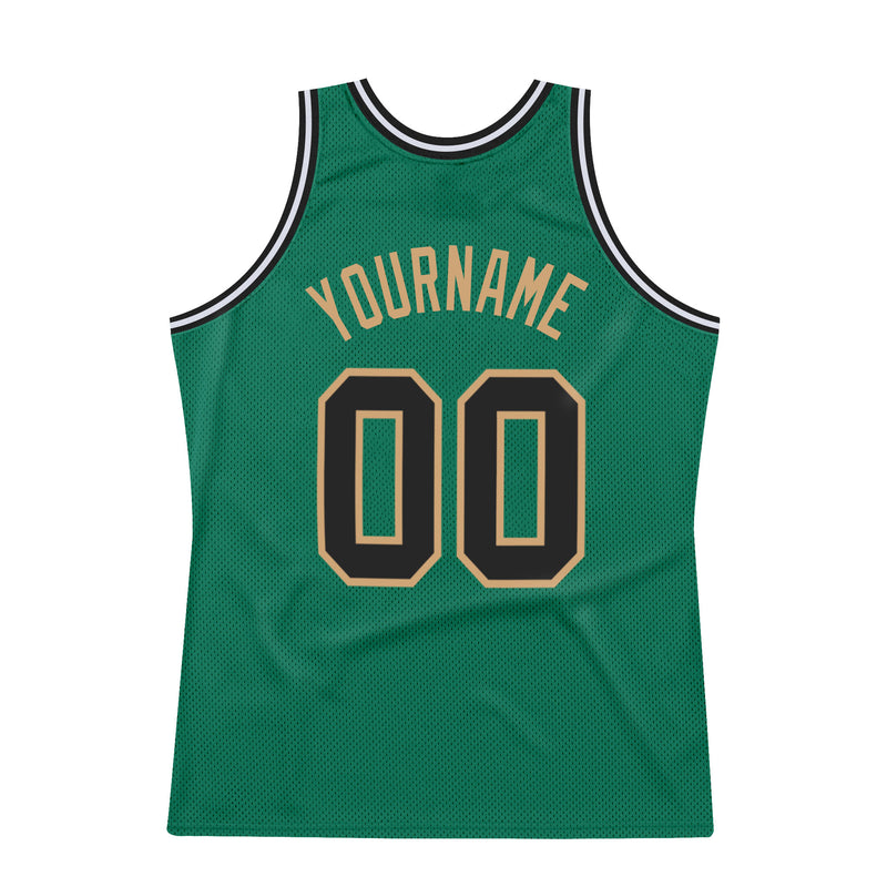 Custom Kelly Green Black-Old Gold Authentic Throwback Basketball Jersey