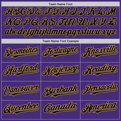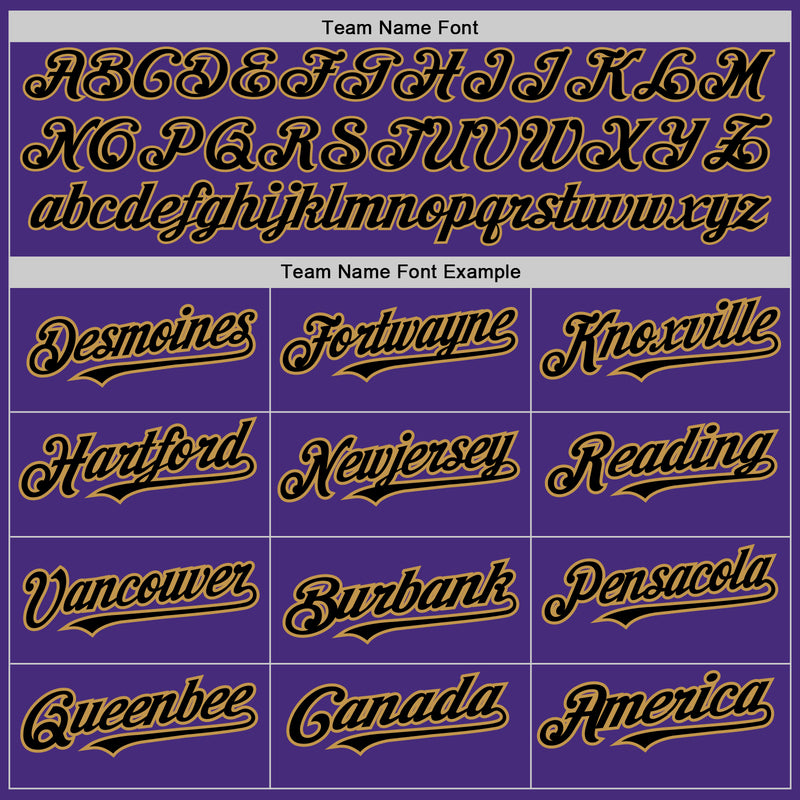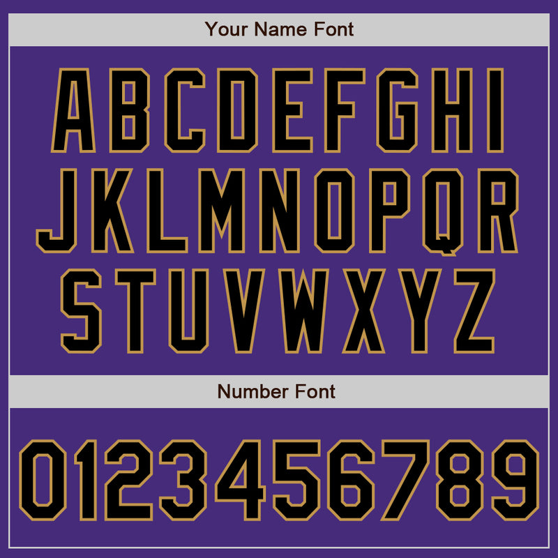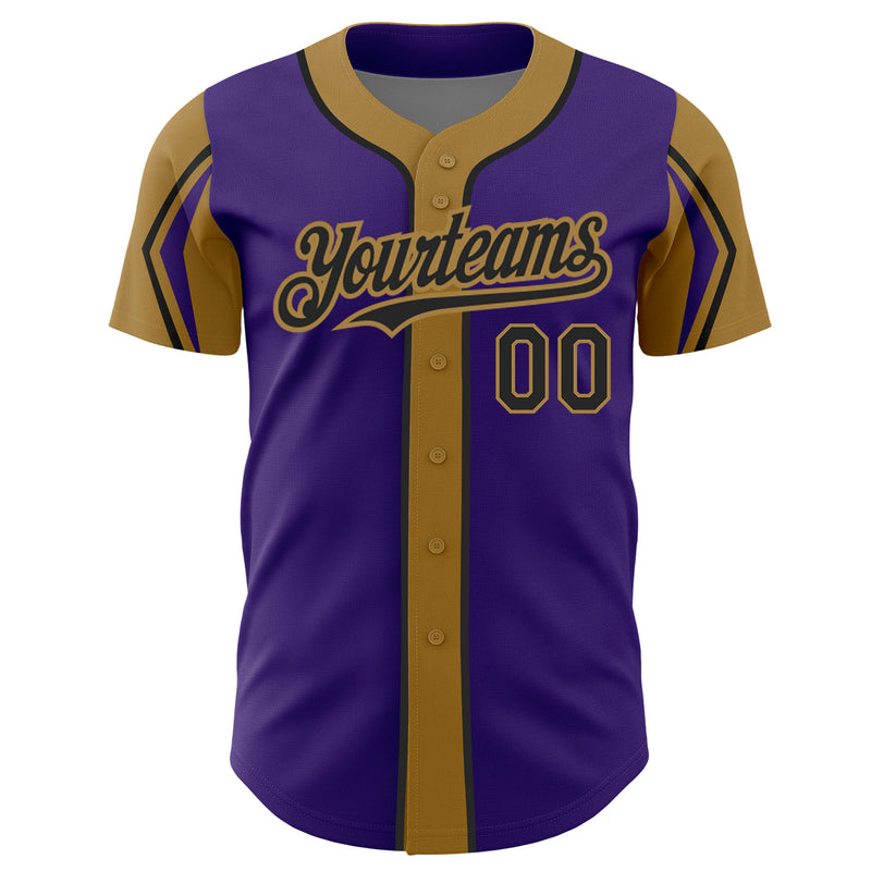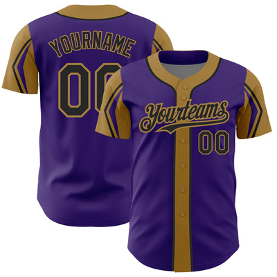 Custom Purple Black-Old Gold 3 Colors Arm Shapes Authentic Baseball Jersey