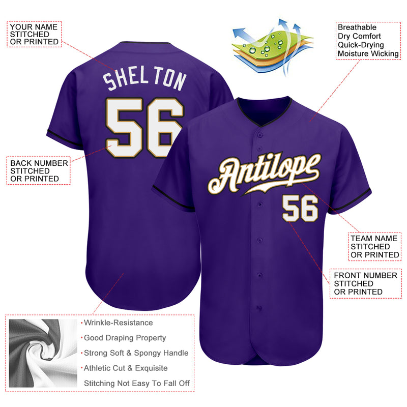 Custom Purple White-Old Gold Authentic Baseball Jersey