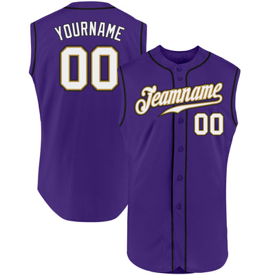 Custom Purple White-Old Gold Authentic Sleeveless Baseball Jersey