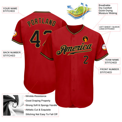 Custom Red Black-Old Gold Authentic Baseball Jersey