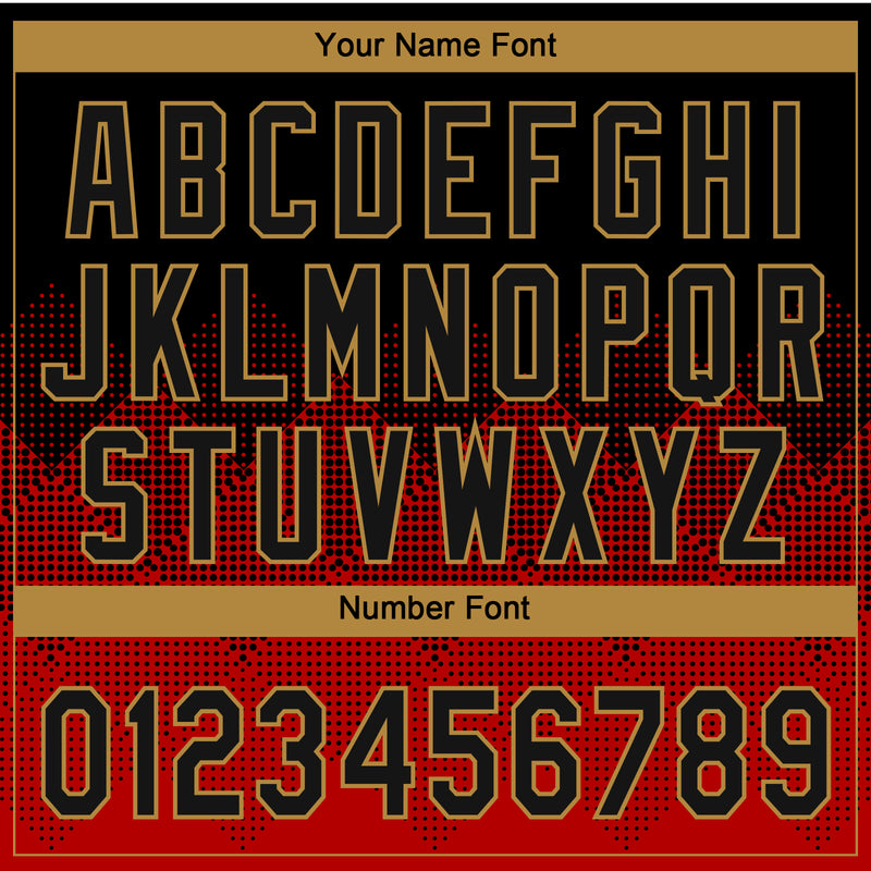 Custom Red Black-Old Gold 3D Pattern Gradient Square Shapes Two-Button Unisex Softball Jersey