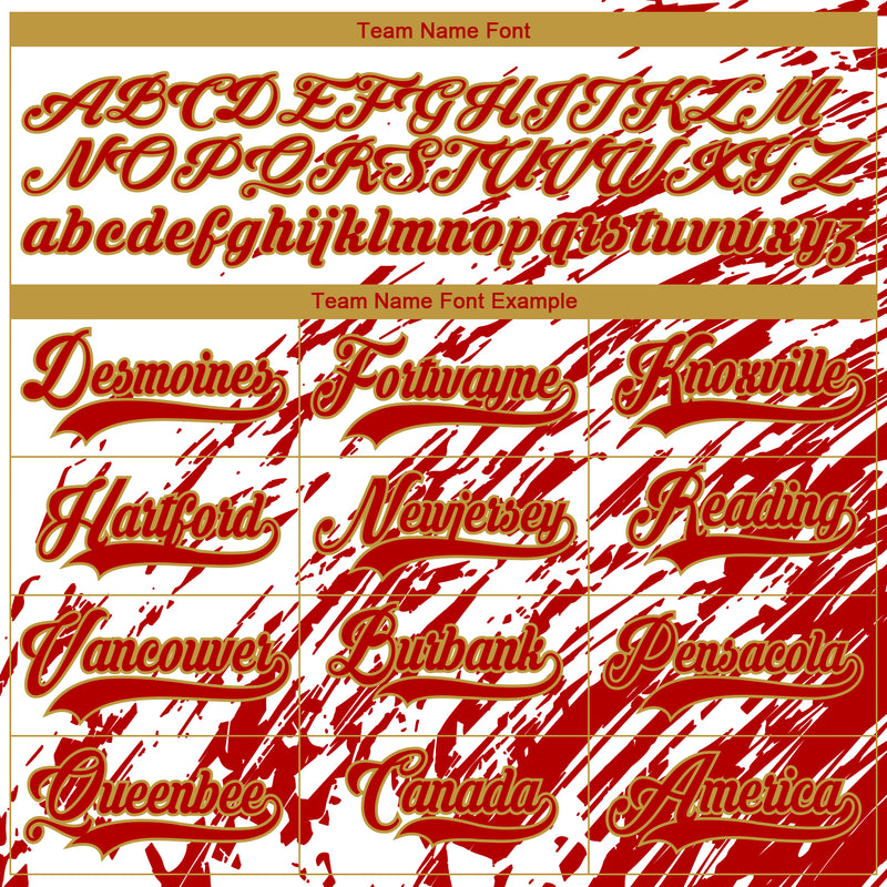 Custom White Red-Old Gold 3D Splash Art Hockey Lace Neck Jersey