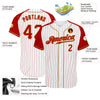 Custom White Red Pinstripe Red-Old Gold Authentic Raglan Sleeves Baseball Jersey