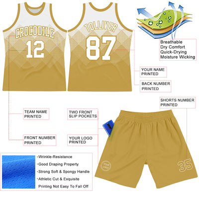 Custom White Old Gold Gradient Square Shapes Round Neck Sublimation Basketball Suit Jersey