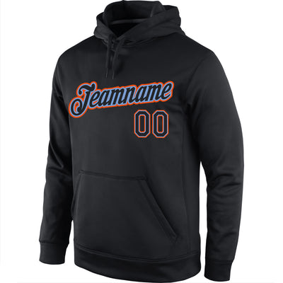 Custom Stitched Black Black-Orange Sports Pullover Sweatshirt Hoodie