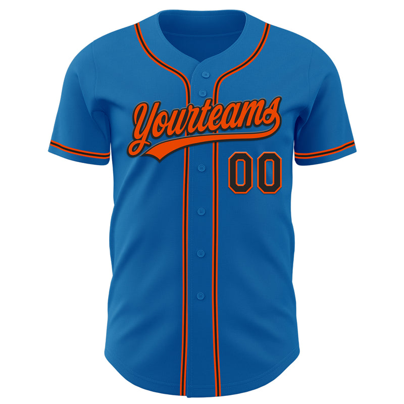 Custom Blue Black-Orange Authentic Baseball Jersey
