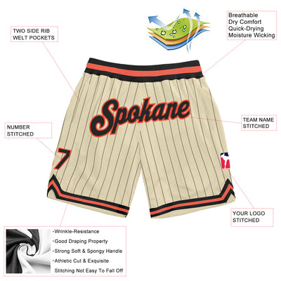 Custom Cream Black Pinstripe Black-Orange Authentic Basketball Shorts