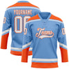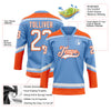 Custom Light Blue White-Orange Hockey Lace Neck Jersey