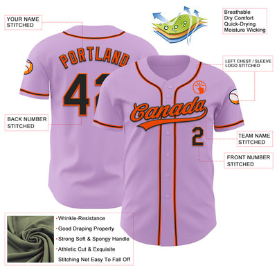 Custom Light Purple Black-Orange Authentic Baseball Jersey
