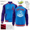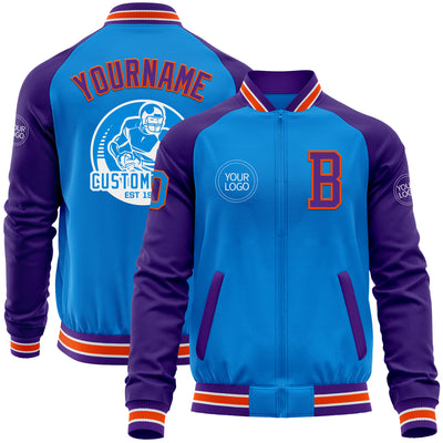 Custom Powder Blue Orange-Purple Bomber Varsity Letterman Two Tone Zipper Jacket
