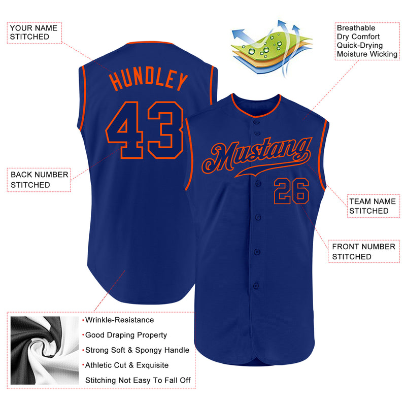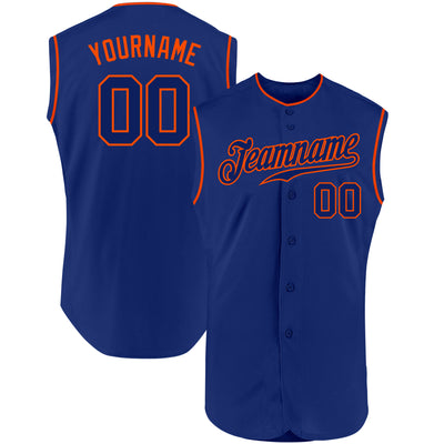 Custom Royal Royal-Orange Authentic Sleeveless Baseball Jersey