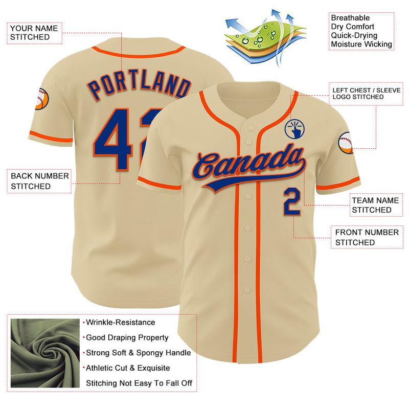 Custom Sand Royal-Orange Authentic Baseball Jersey