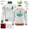 Custom White Kelly Green-Orange Bomber Varsity Letterman Zipper Jacket