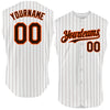 Custom White Brown Pinstripe Orange Authentic Sleeveless Baseball Jersey