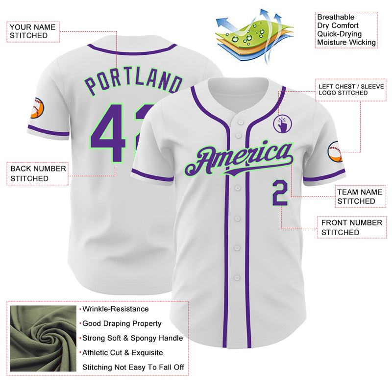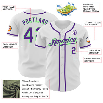 Custom White Purple-Pea Green Authentic Baseball Jersey