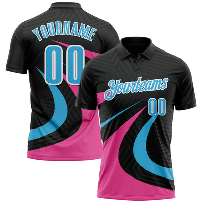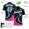Custom Black Sky Blue-Pink 3D Bowling Geometric Shape Performance Polo Shirt