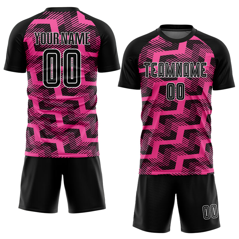 Custom Black Pink-White Line Sublimation Soccer Uniform Jersey