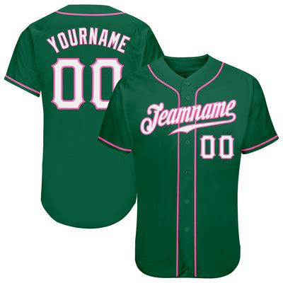 Custom Kelly Green White-Pink Authentic Baseball Jersey