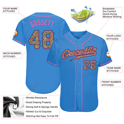 Custom Powder Blue Camo-Pink Authentic Baseball Jersey