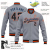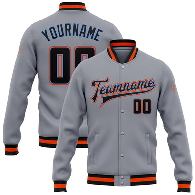 Custom Gray Black Powder Blue-Orange Bomber Full-Snap Varsity Letterman Jacket