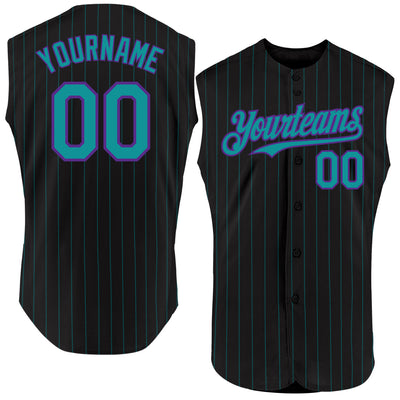 Custom Black Teal Pinstripe Purple Authentic Sleeveless Baseball Jersey