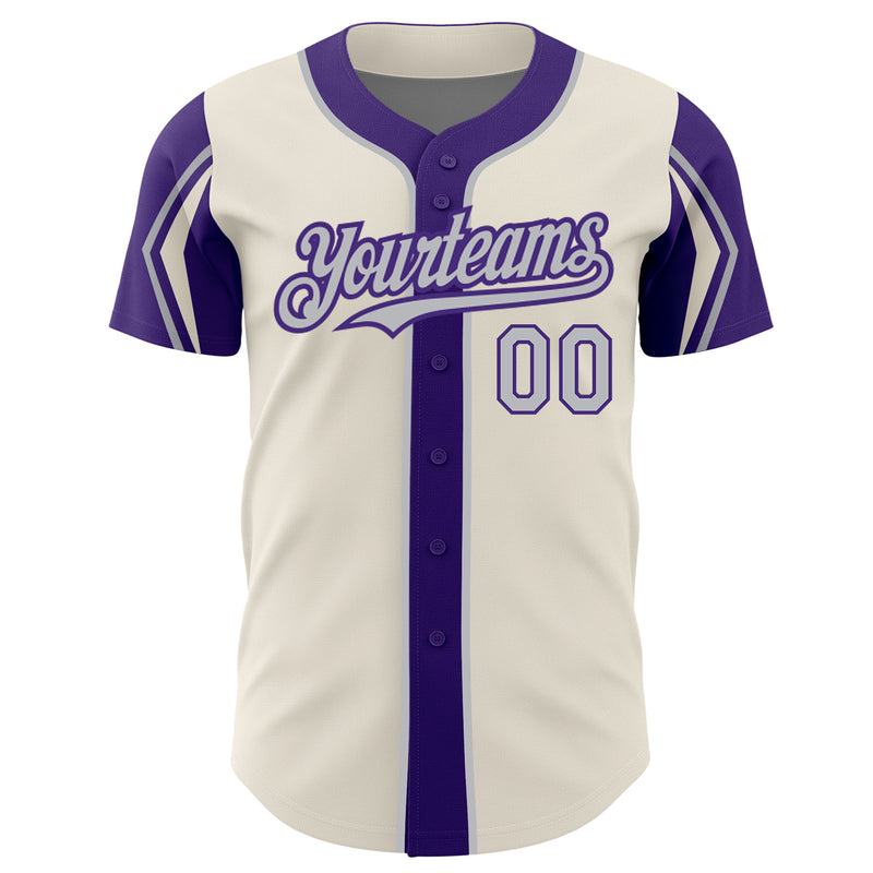 Custom Cream Gray-Purple 3 Colors Arm Shapes Authentic Baseball Jersey