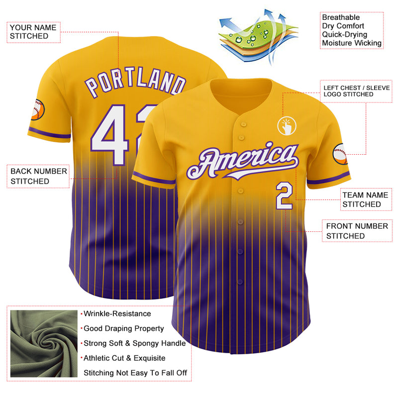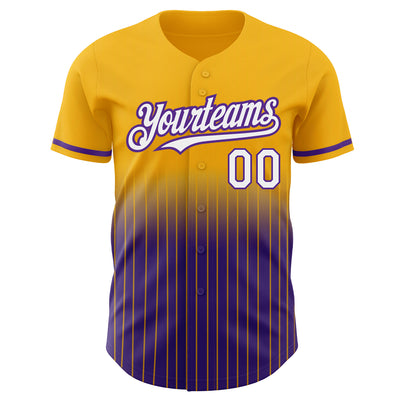 Custom Gold Pinstripe White-Purple Authentic Fade Fashion Baseball Jersey
