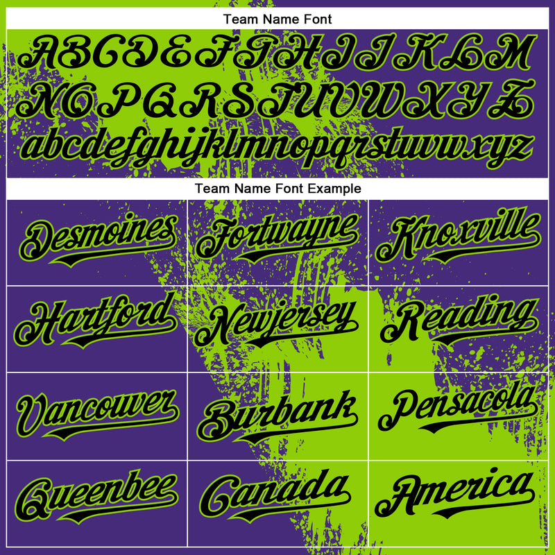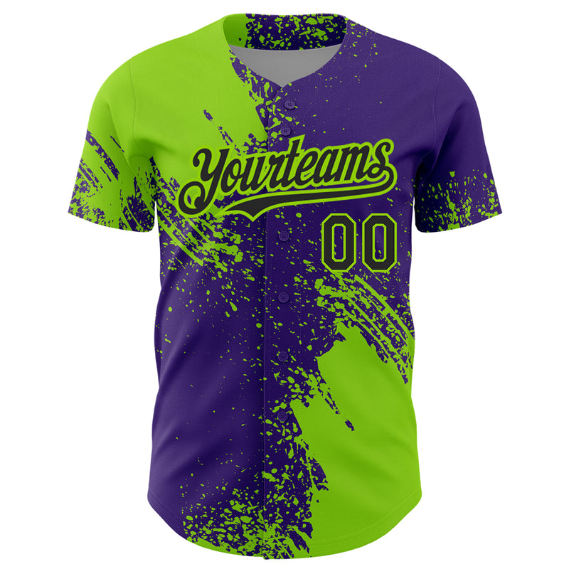 Custom Neon Green Black-Purple 3D Pattern Design Abstract Brush Stroke Authentic Baseball Jersey