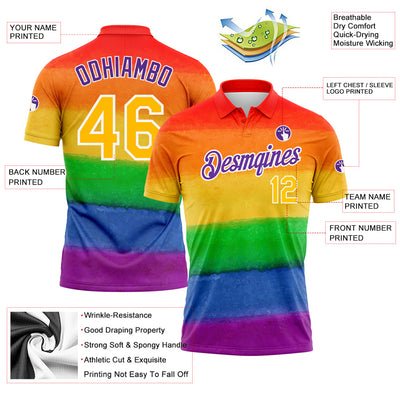 Custom Rainbow Gold-Purple 3D Pattern Design Pride Month Love Is Love LGBT Performance Golf Polo Shirt