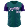 Custom Teal Purple Pinstripe White Authentic Two Tone Baseball Jersey